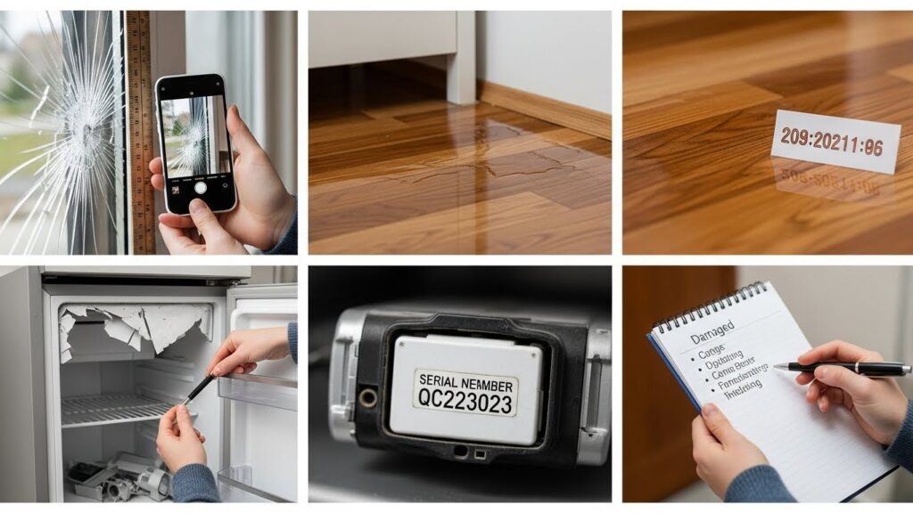 This is where you prove the value. Get close to the texture. Show the mold on the drywall. Show the brand name on the electronics. Capture the serial number on the back. These details prove the item’s worth.